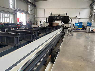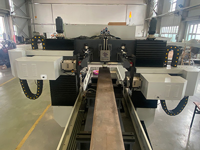 DZ0613 CNC Gantry High speed Double Spindle Drilling machine This machine is designed for drilling holes on both sides of railway beams and can also be used for drilling steel structural components, rails, towers, and other similar steel parts. It is capable of drilling through holes, blind holes, stepped holes, and chamfering hole ends (if a forming tool is used, the drilling and chamfering can be completed in a single operation). The maximum workpiece size it can handle is 13,000 mm by 600 mm.